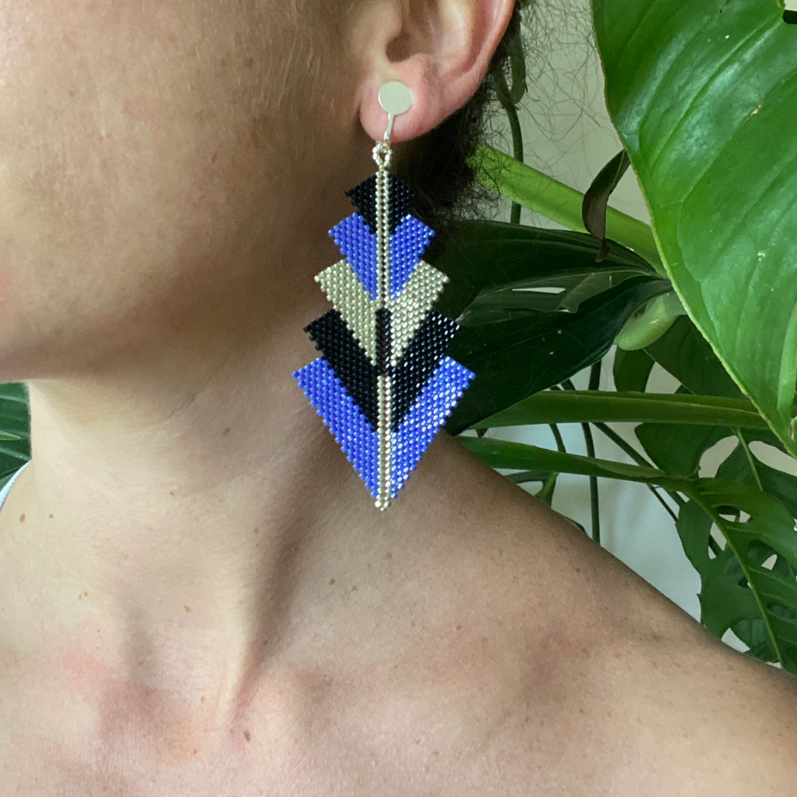Los aretes AVA están hechos perla por perla, es un tejido hecho a mano con perlas de vidrio japonesas.
