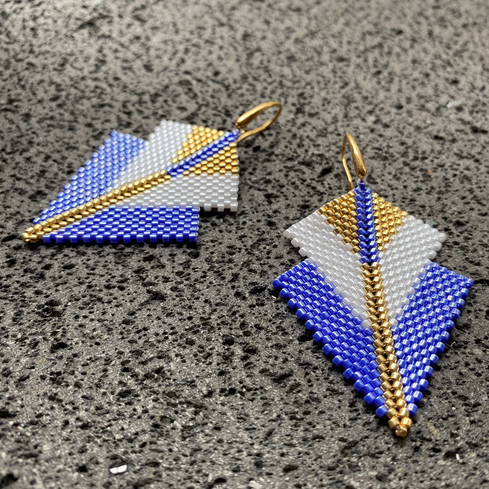 Los aretes AVA están hechos perla por perla, es un tejido hecho a mano con perlas de vidrio japonesas.