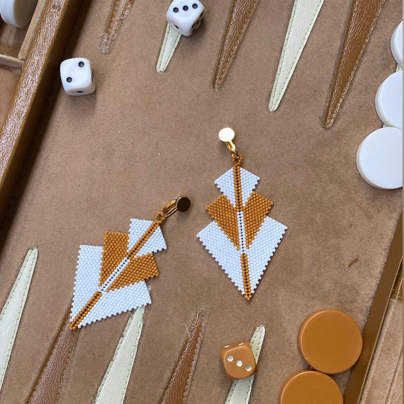 Los aretes AVA están hechos perla por perla, es un tejido hecho a mano con perlas de vidrio japonesas.