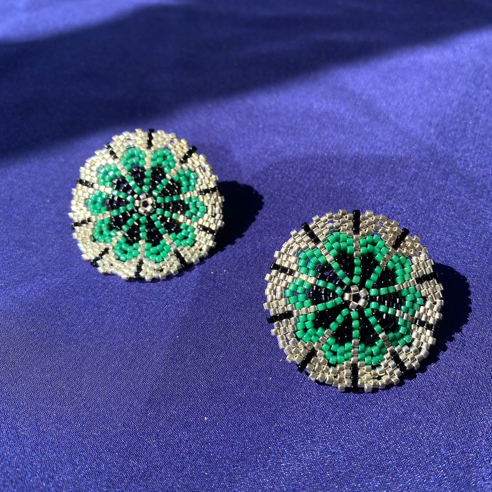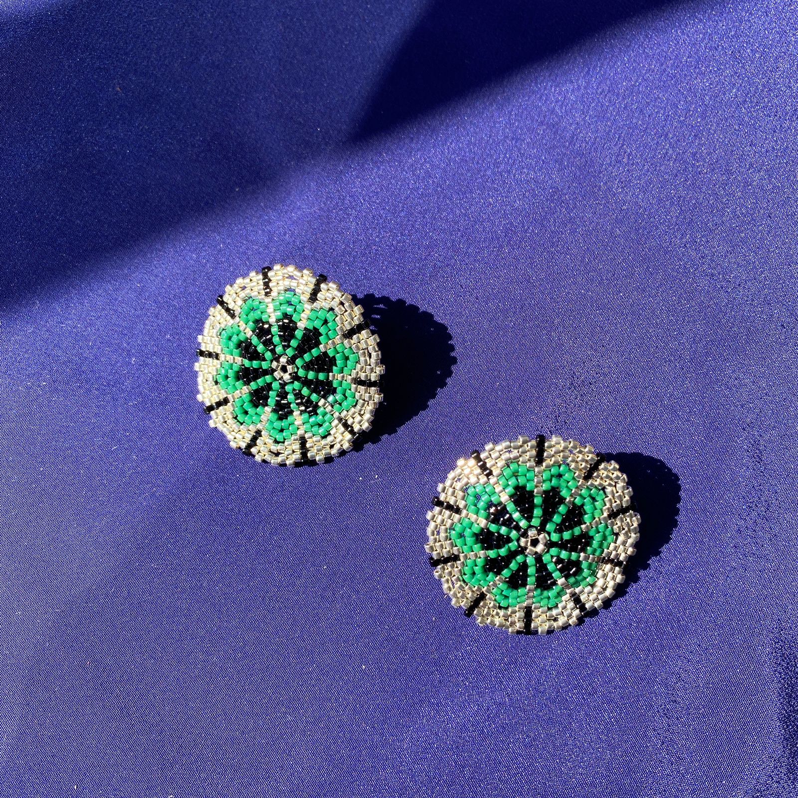 Los aretes AVA están hechos perla por perla, es un tejido hecho a mano con perlas de vidrio japonesas.