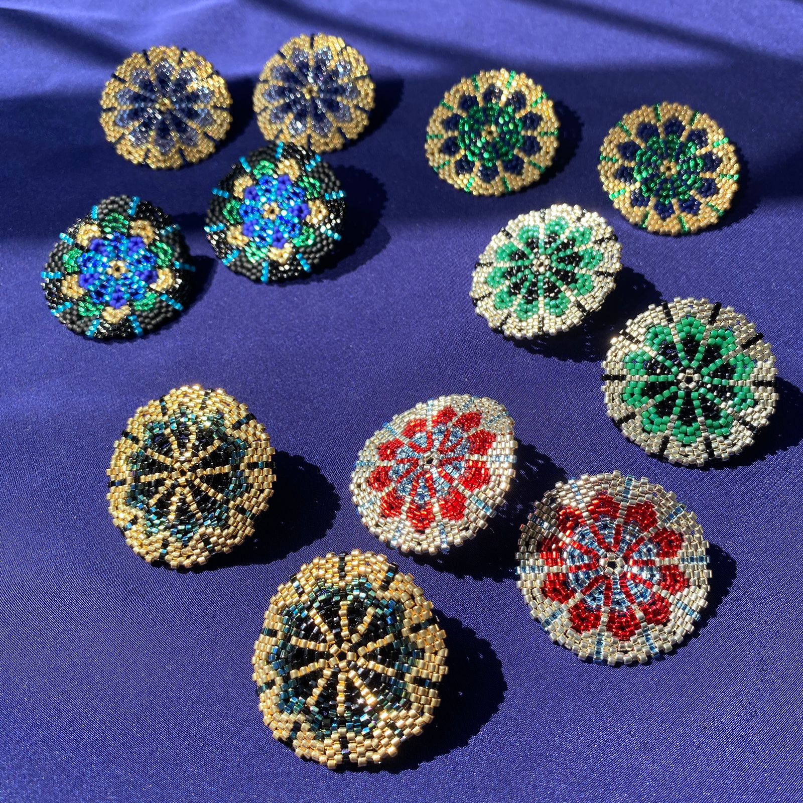 Los aretes AVA están hechos perla por perla, es un tejido hecho a mano con perlas de vidrio japonesas.