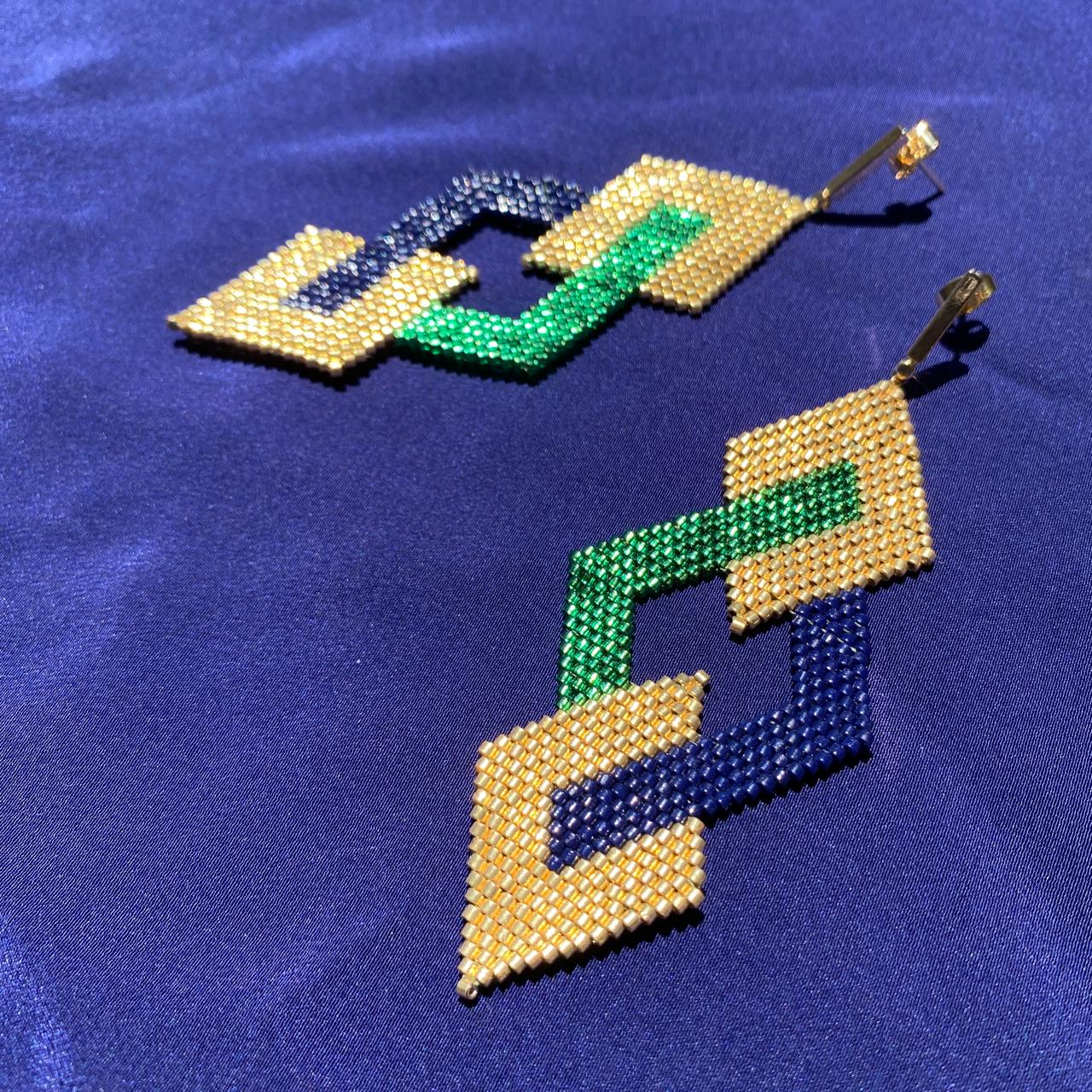 Los aretes AVA están hechos perla por perla, es un tejido hecho a mano con perlas de vidrio japonesas.