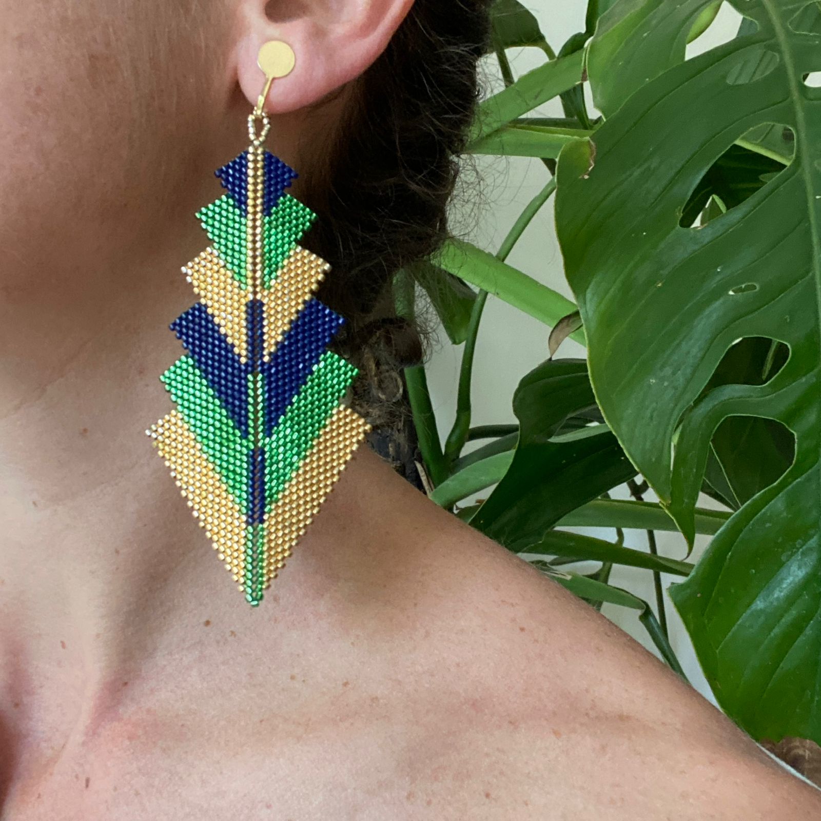 Los aretes AVA están hechos perla por perla, es un tejido hecho a mano con perlas de vidrio japonesas.