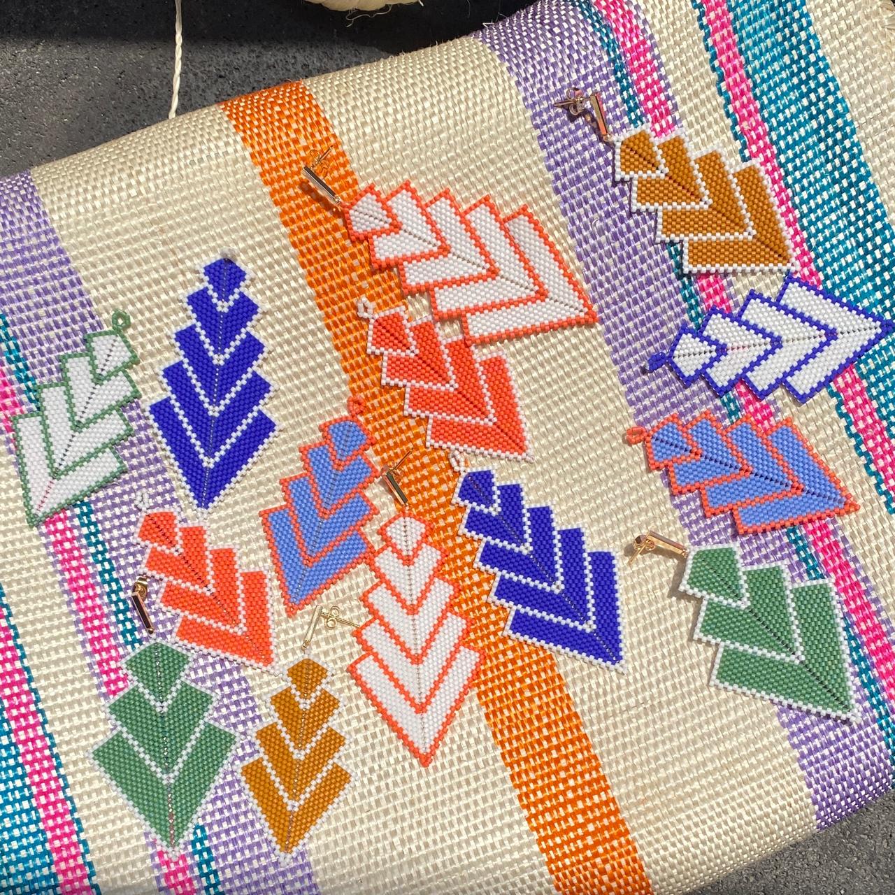 Los aretes AVA están hechos perla por perla, es un tejido hecho a mano con perlas de vidrio japonesas