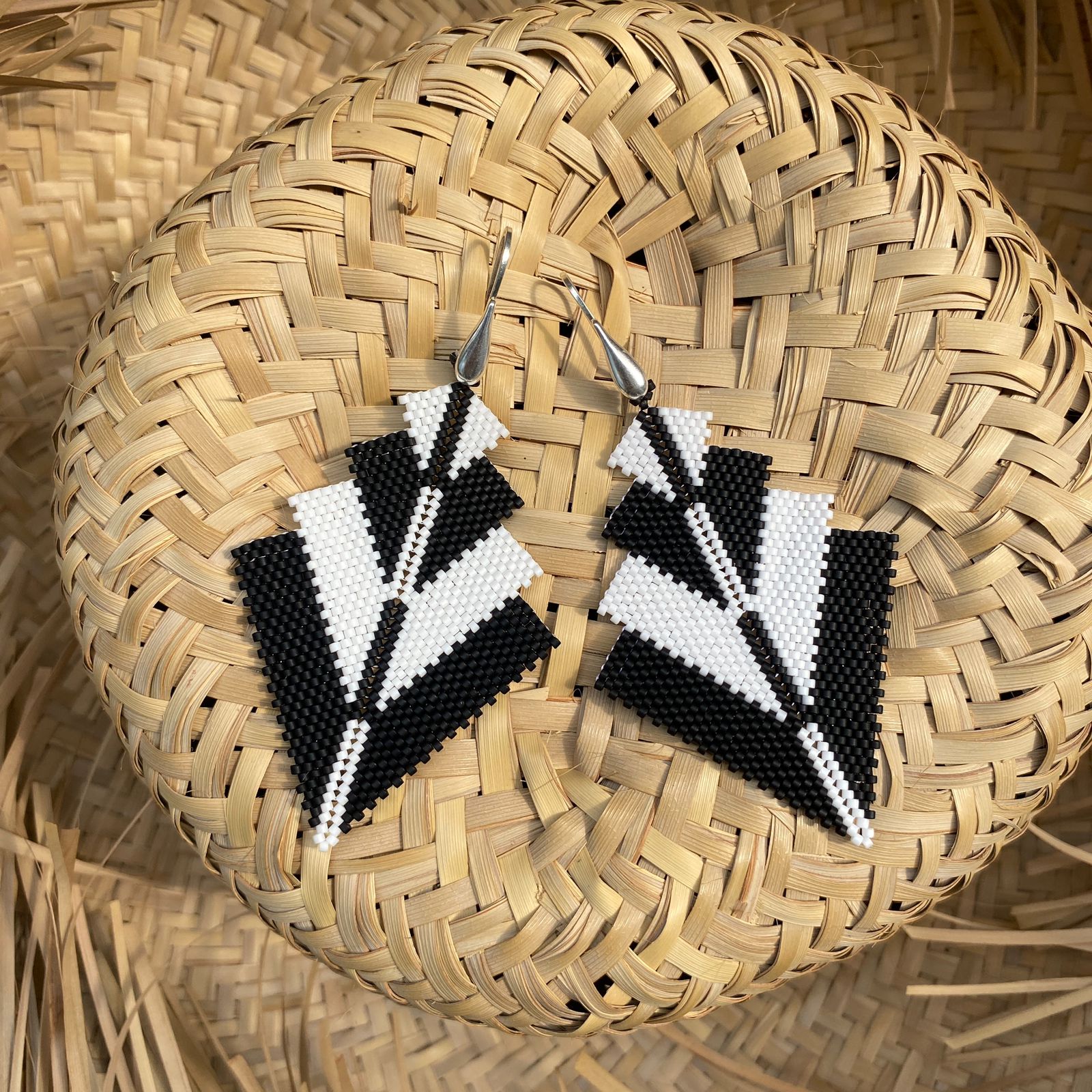 Los aretes AVA están hechos perla por perla, es un tejido hecho a mano con perlas de vidrio japonesas.