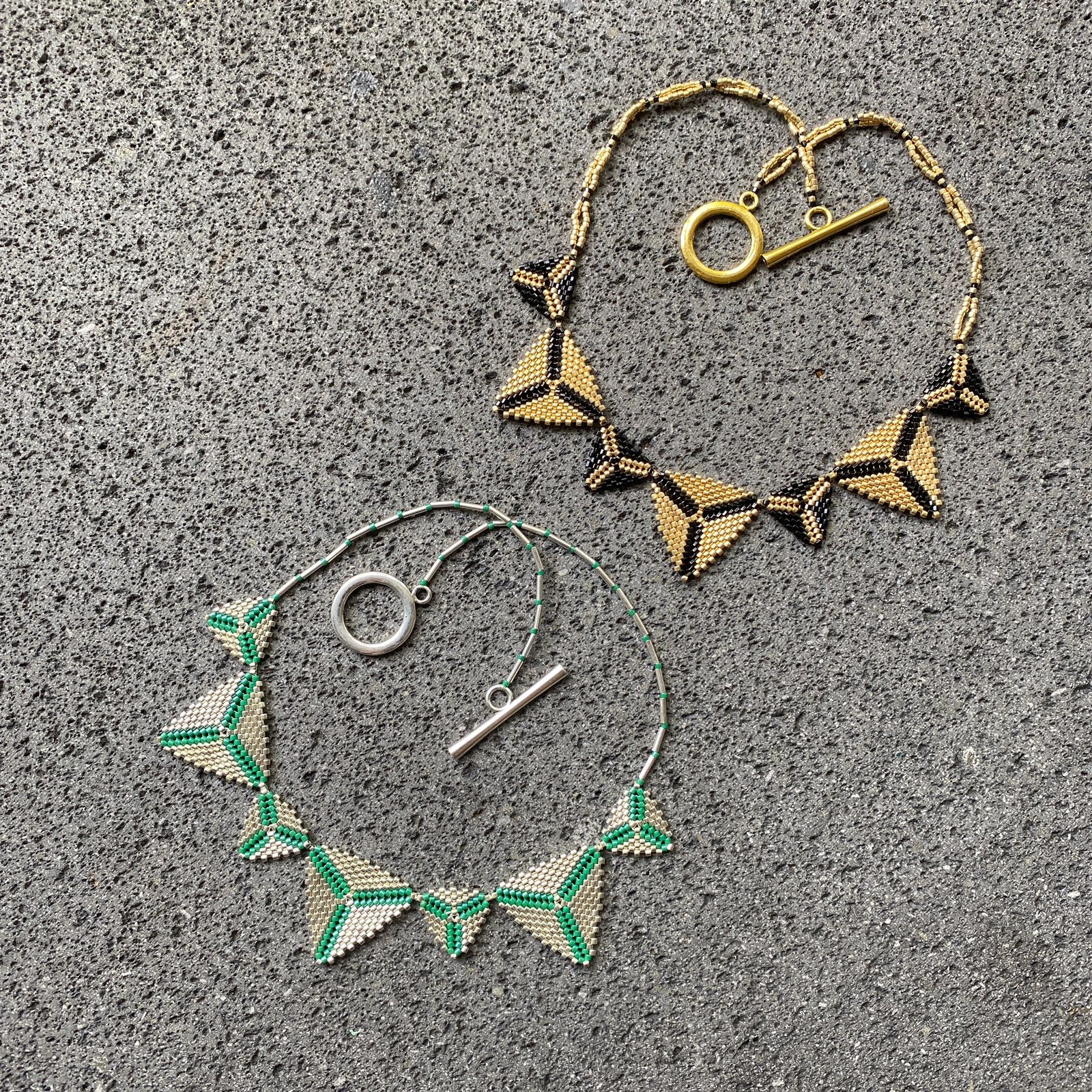 Los collares AVA están hechos perla por perla, es un tejido hecho a mano con perlas de vidrio japonesas.