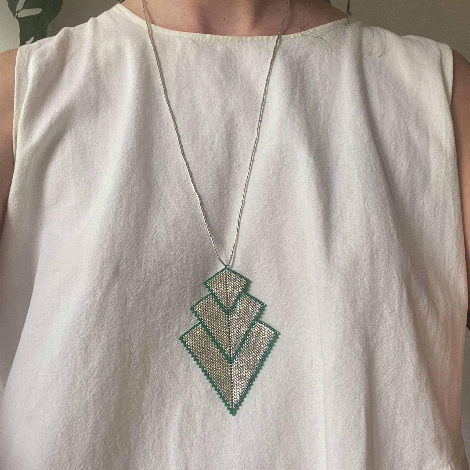 El Dije Cygni es una pieza muy especial. Esta compuesto de un dije grande en color Plateado y Verde Esmeralda.