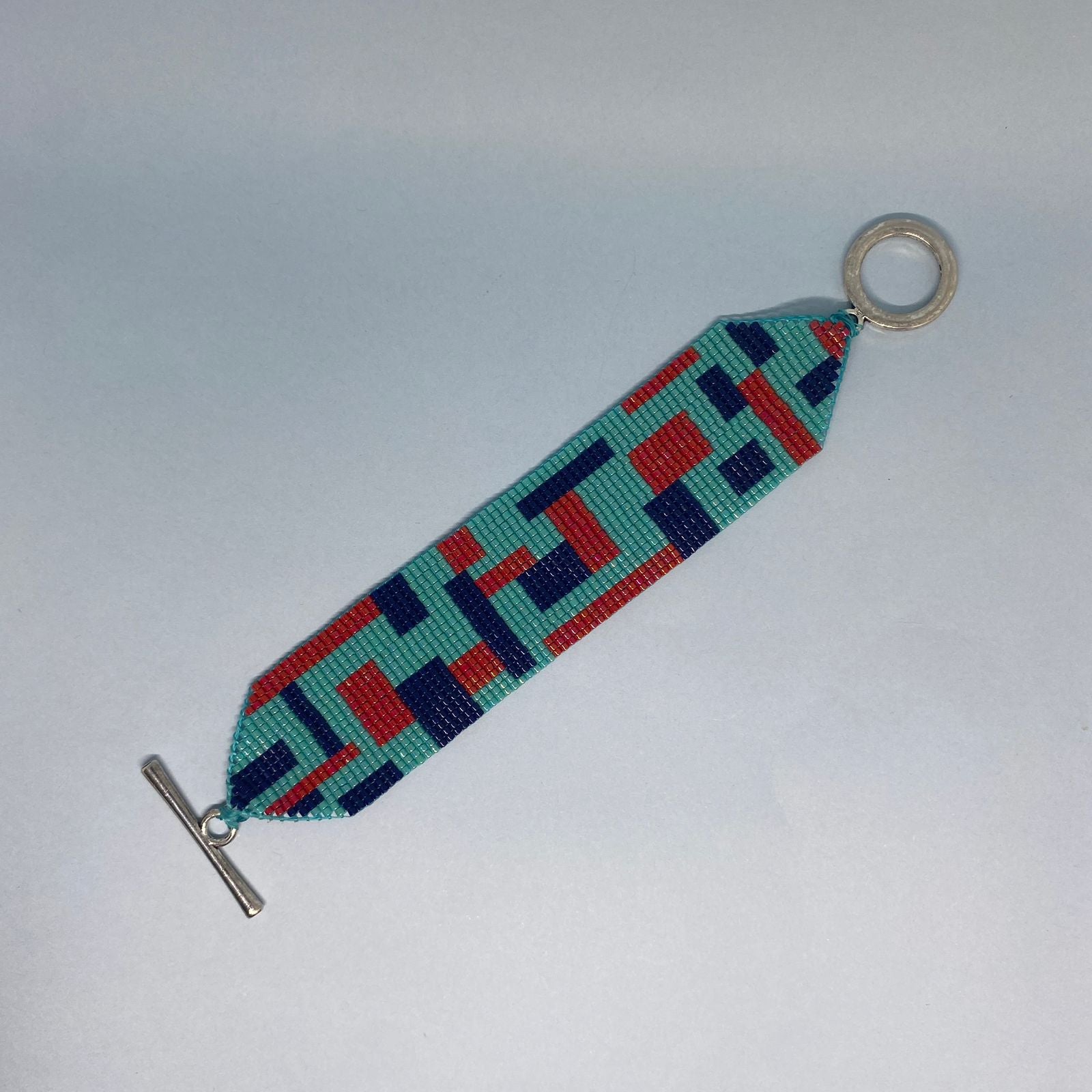 En AVA creamos piezas muy especiales, la pulsera Geométrica en color Azul Turquesa, Rojo y Azul Marino esta inspirada en los colores y formas geométricas del arte mexicano.